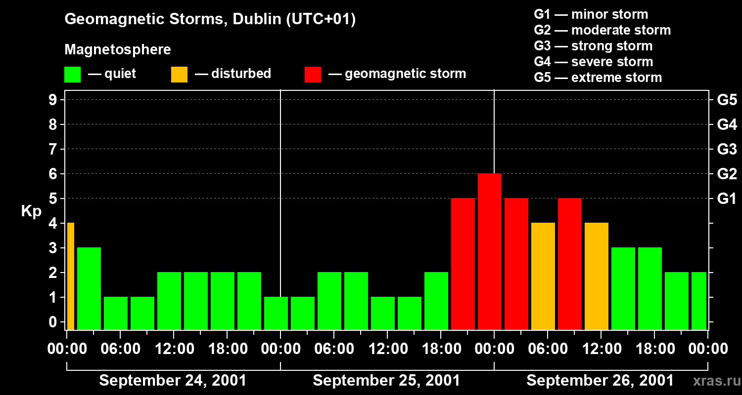 Geomagnetic storms in Dublin on Sep 26, 2001
