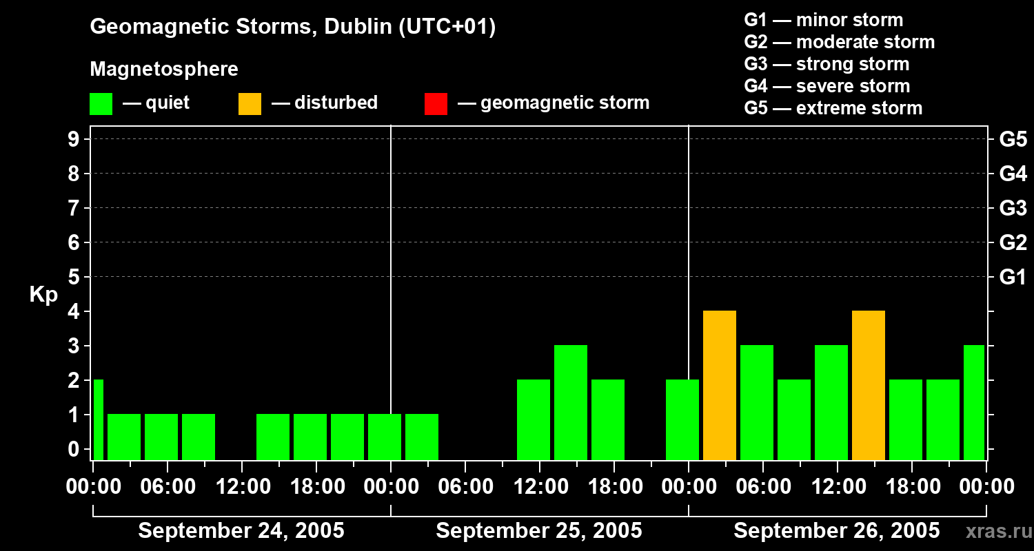 Geomagnetic storms in Dublin on Sep 26, 2005