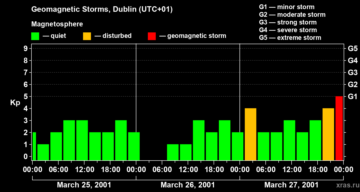 Geomagnetic storms in Dublin on Mar 27, 2001