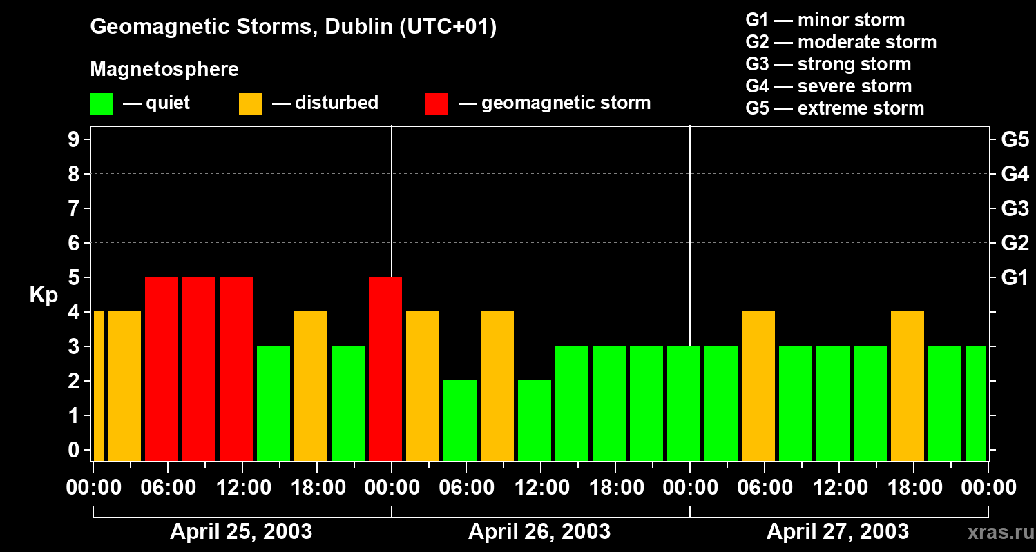 Geomagnetic storms in Dublin on Apr 27, 2003