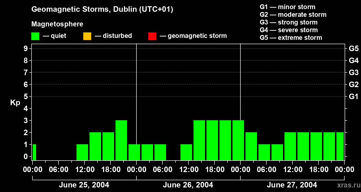 Geomagnetic storms in Dublin on Jun 27, 2004