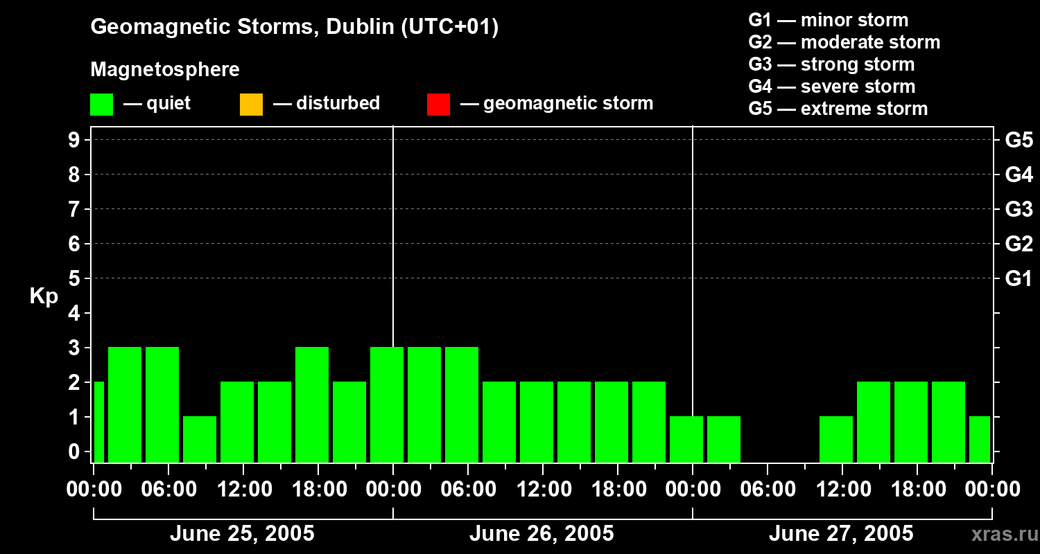 Geomagnetic storms in Dublin on Jun 27, 2005