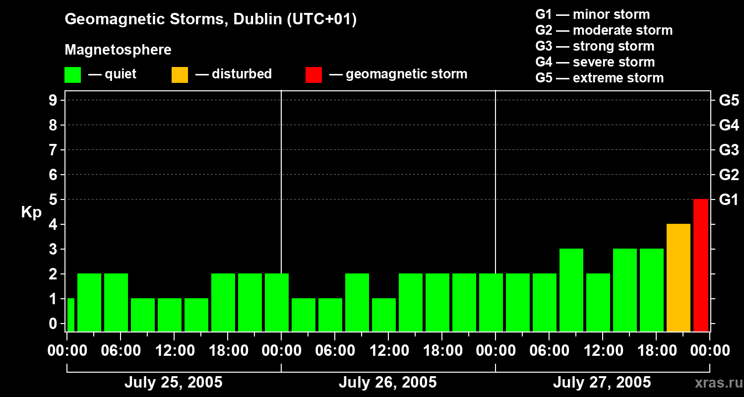 Geomagnetic storms in Dublin on Jul 27, 2005