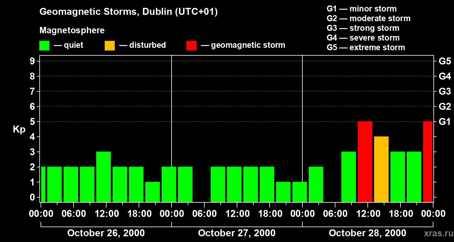 Geomagnetic storms in Dublin on Oct 28, 2000