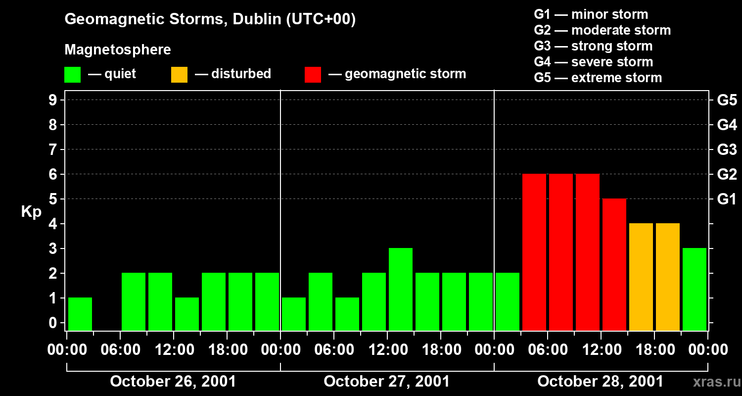 Geomagnetic storms in Dublin on Oct 28, 2001