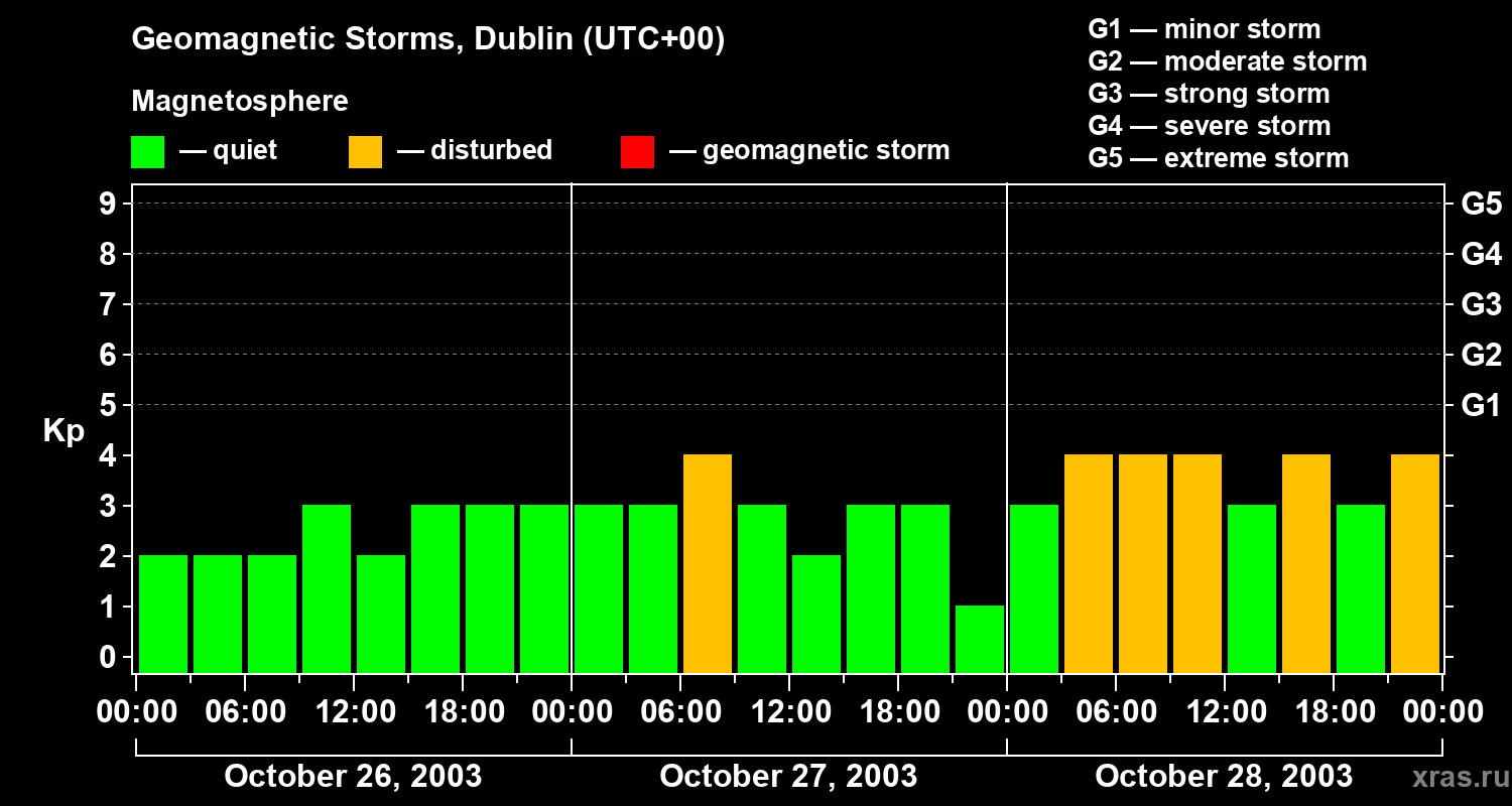Geomagnetic storms in Dublin on Oct 28, 2003