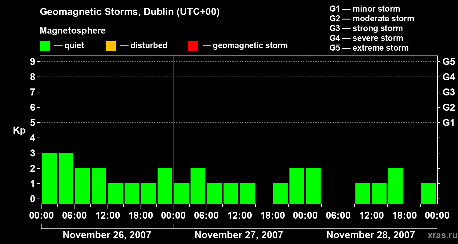 Geomagnetic storms in Dublin on Nov 28, 2007