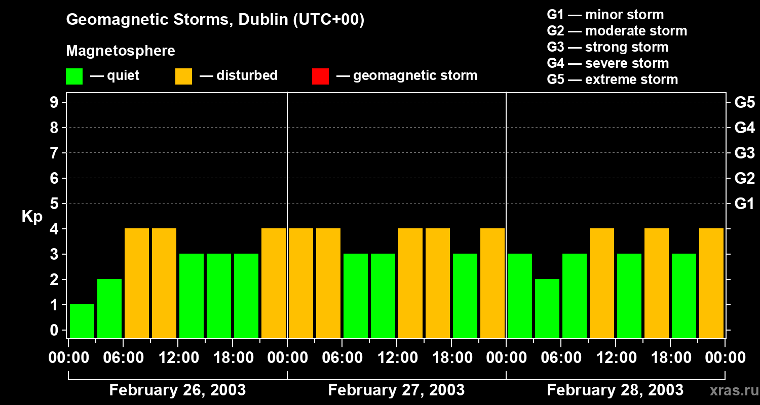 Geomagnetic storms in Dublin on Feb 28, 2003