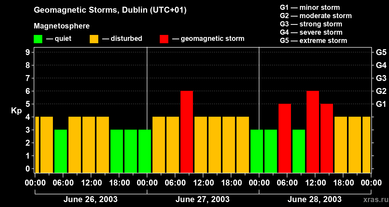 Geomagnetic storms in Dublin on Jun 28, 2003