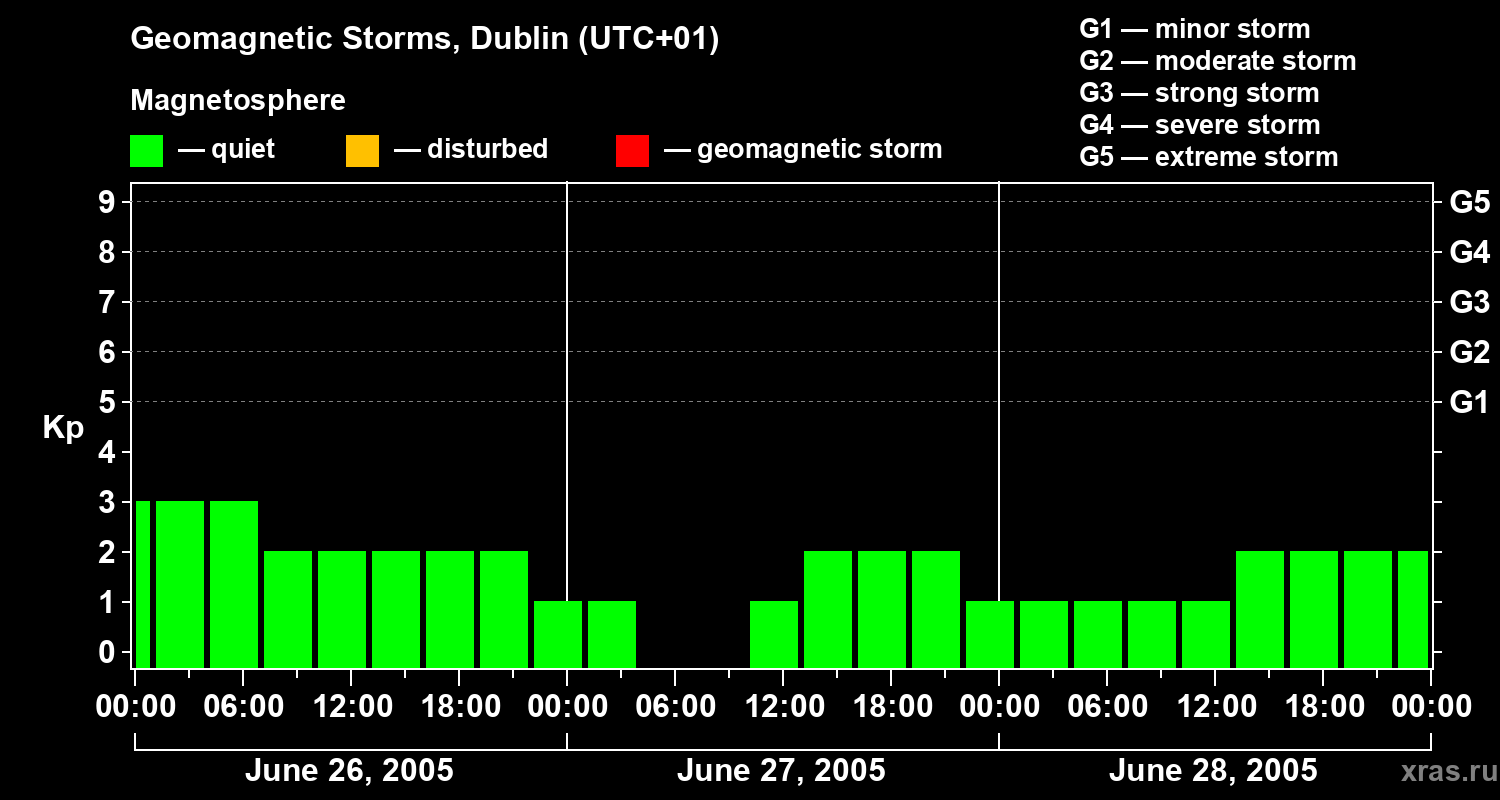 Geomagnetic storms in Dublin on Jun 28, 2005