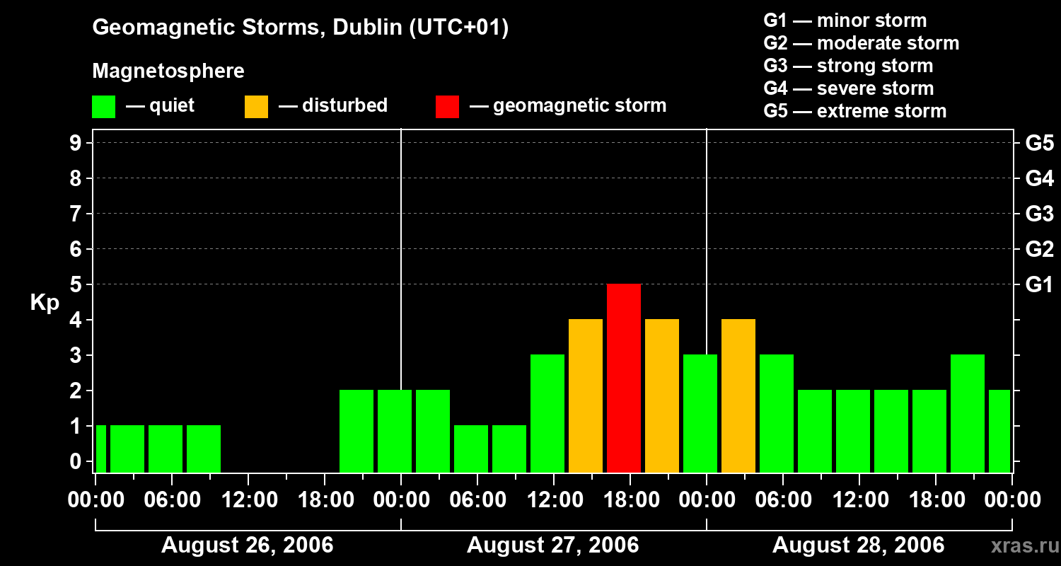 Geomagnetic storms in Dublin on Aug 28, 2006