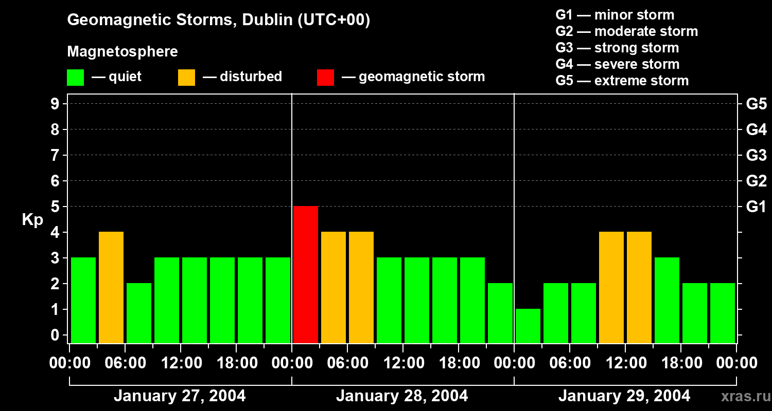 Geomagnetic storms in Dublin on Jan 29, 2004