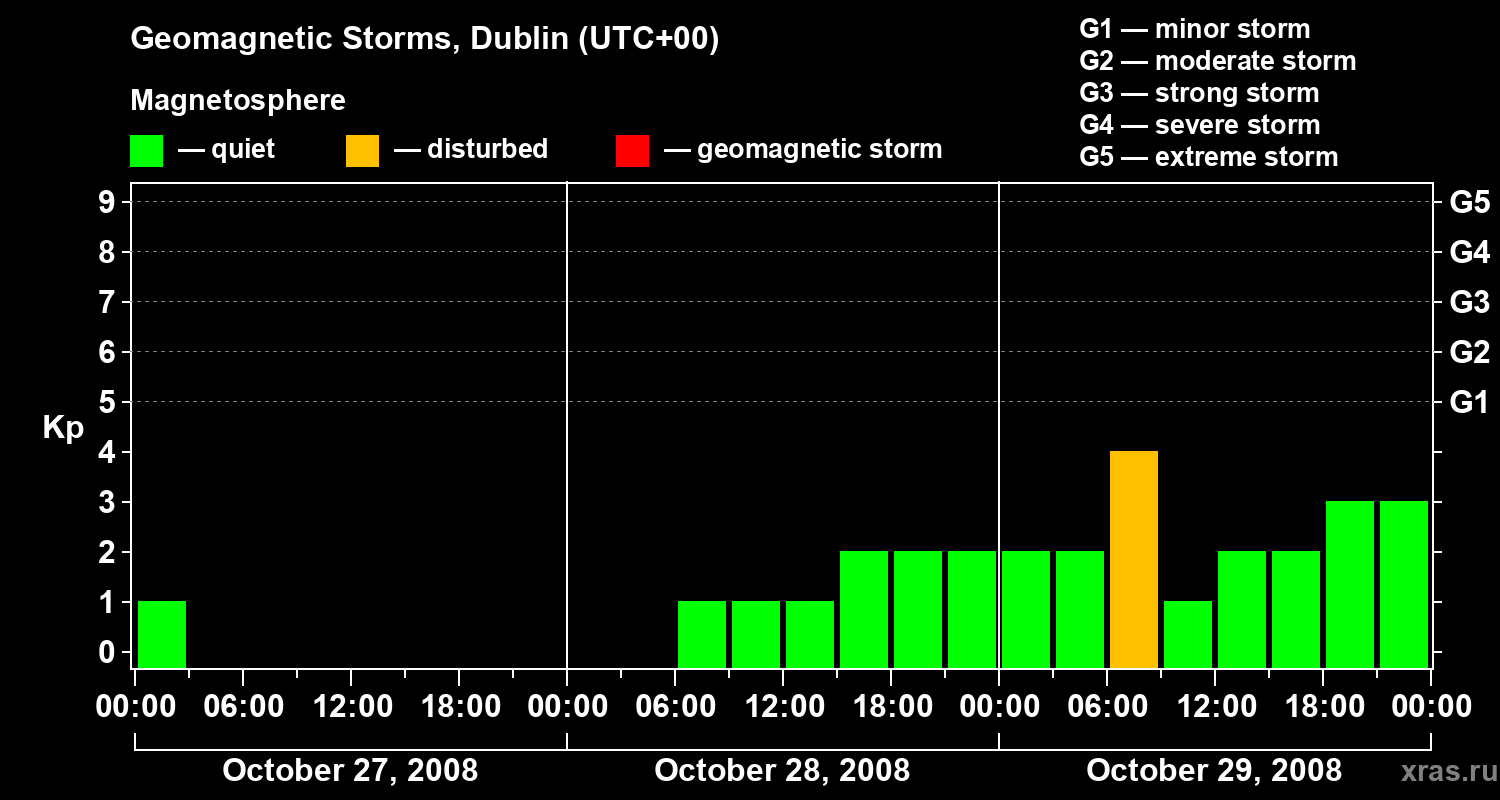 Geomagnetic storms in Dublin on Oct 29, 2008