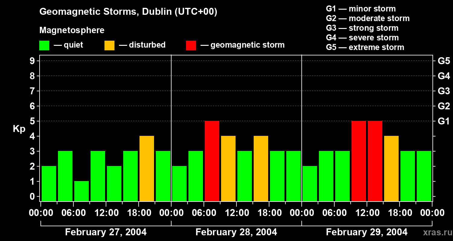 Geomagnetic storms in Dublin on Feb 29, 2004