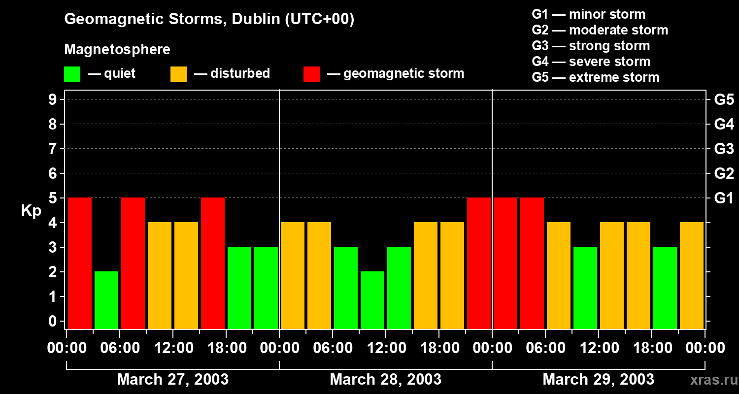 Geomagnetic storms in Dublin on Mar 29, 2003