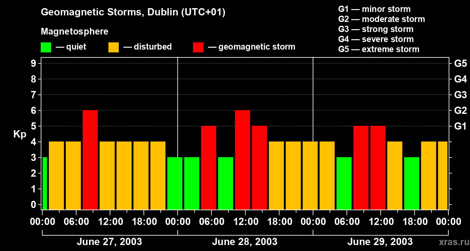 Geomagnetic storms in Dublin on Jun 29, 2003
