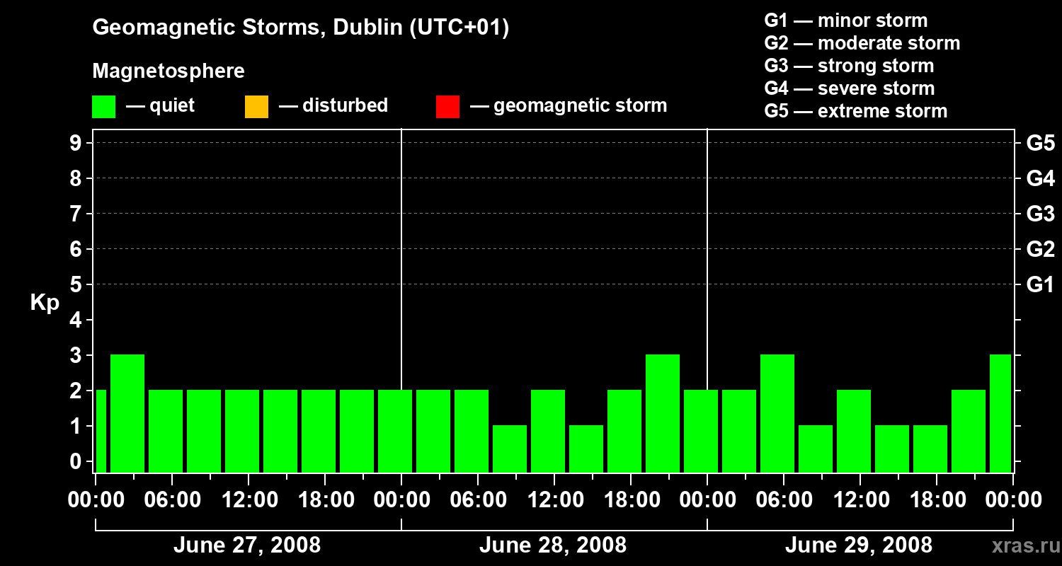Geomagnetic storms in Dublin on Jun 29, 2008