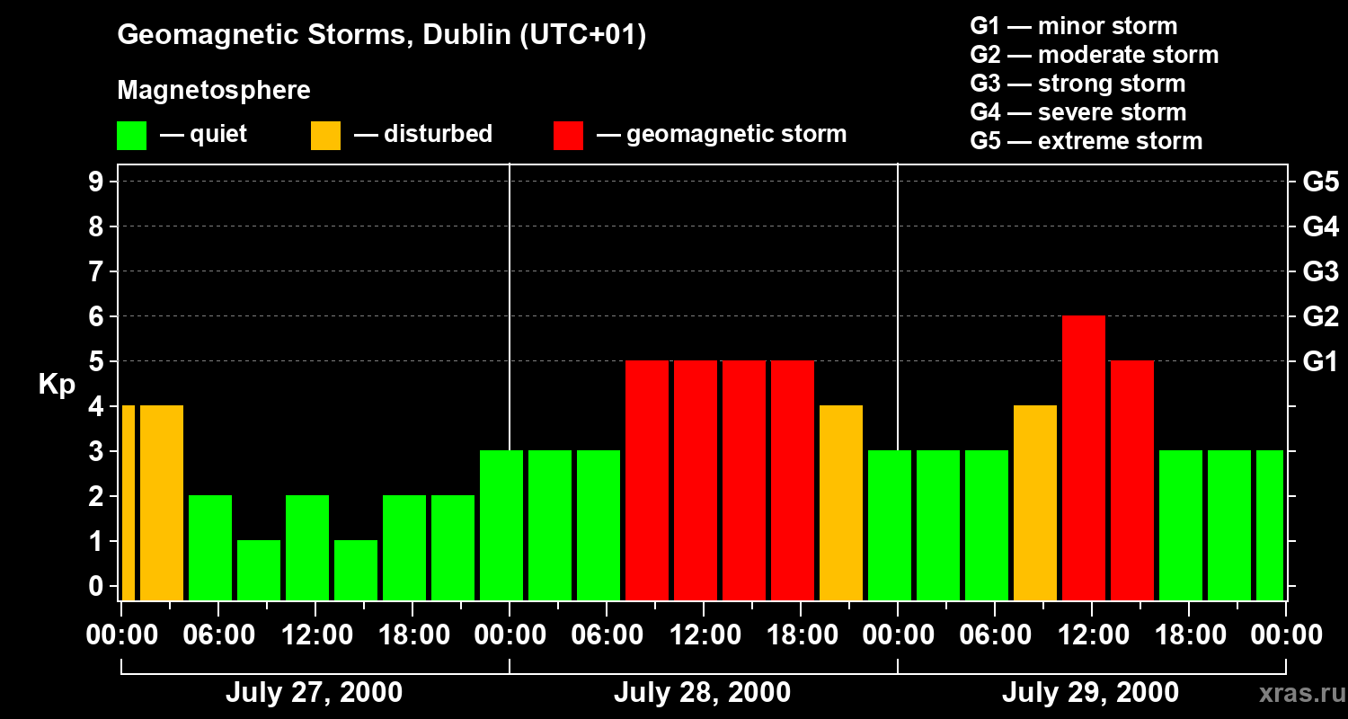 Geomagnetic storms in Dublin on Jul 29, 2000