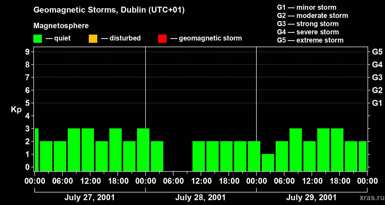 Geomagnetic storms in Dublin on Jul 29, 2001