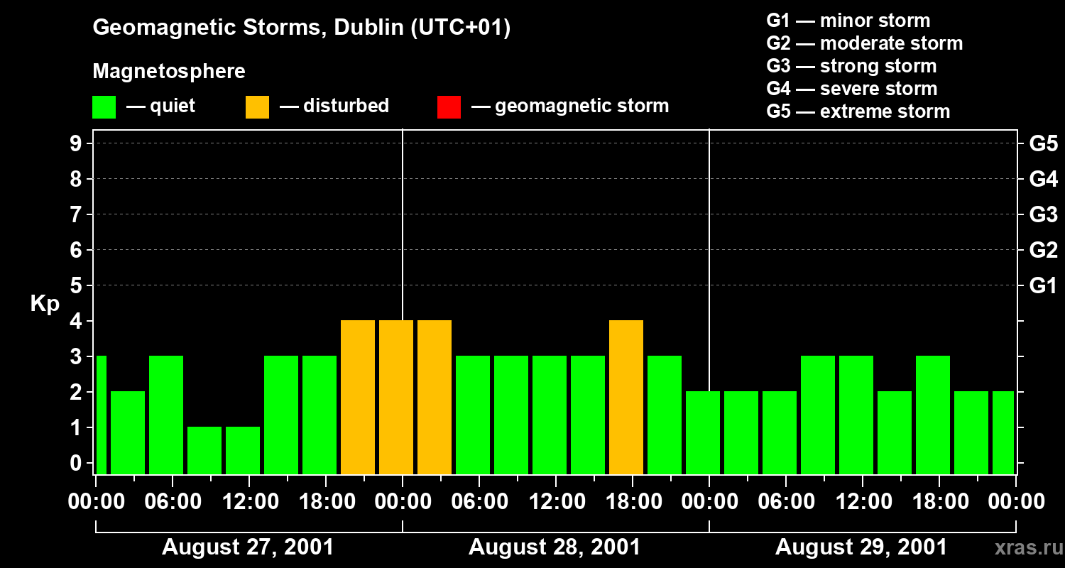 Geomagnetic storms in Dublin on Aug 29, 2001