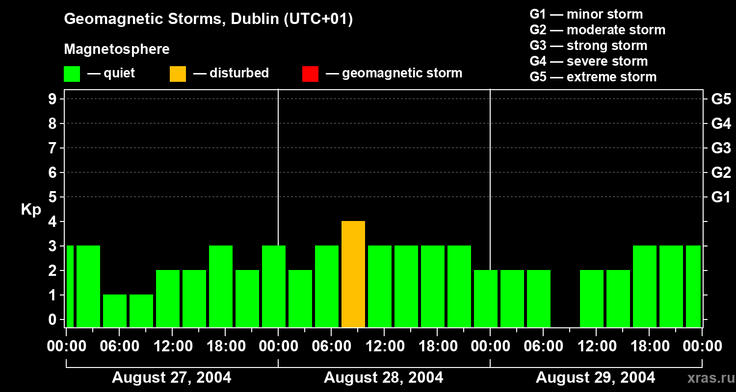 Geomagnetic storms in Dublin on Aug 29, 2004