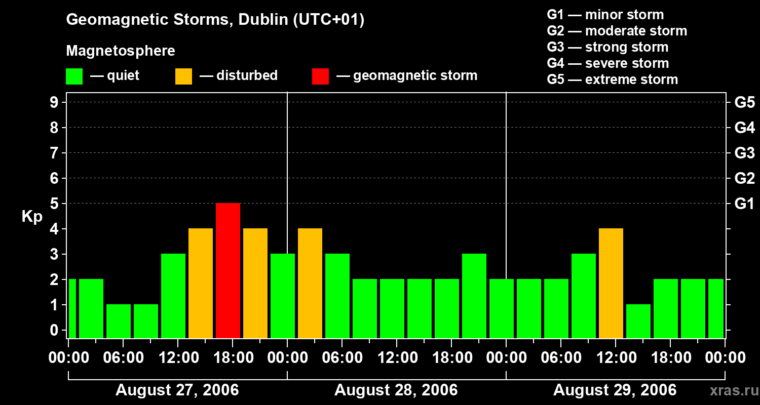 Geomagnetic storms in Dublin on Aug 29, 2006