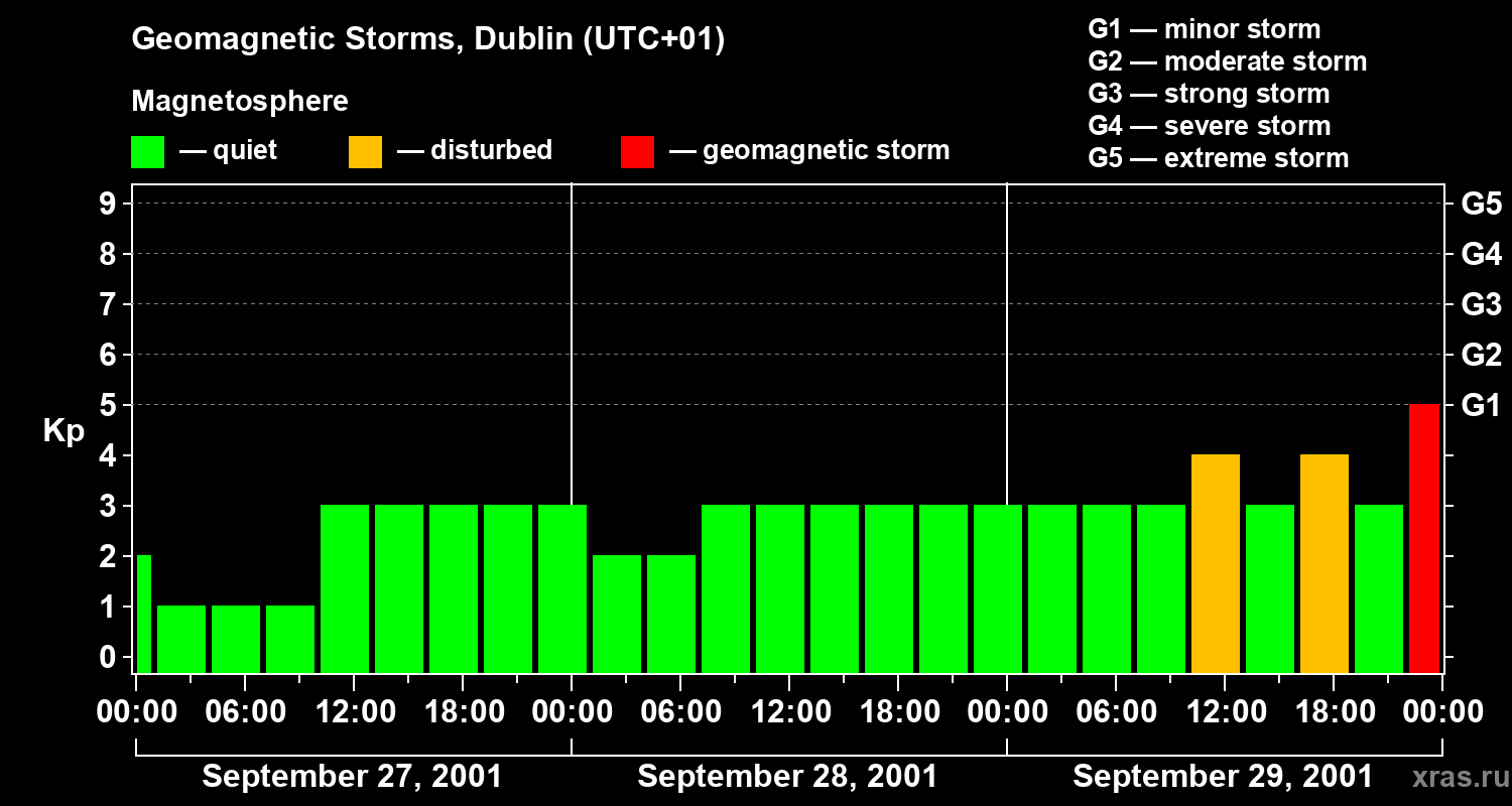 Geomagnetic storms in Dublin on Sep 29, 2001