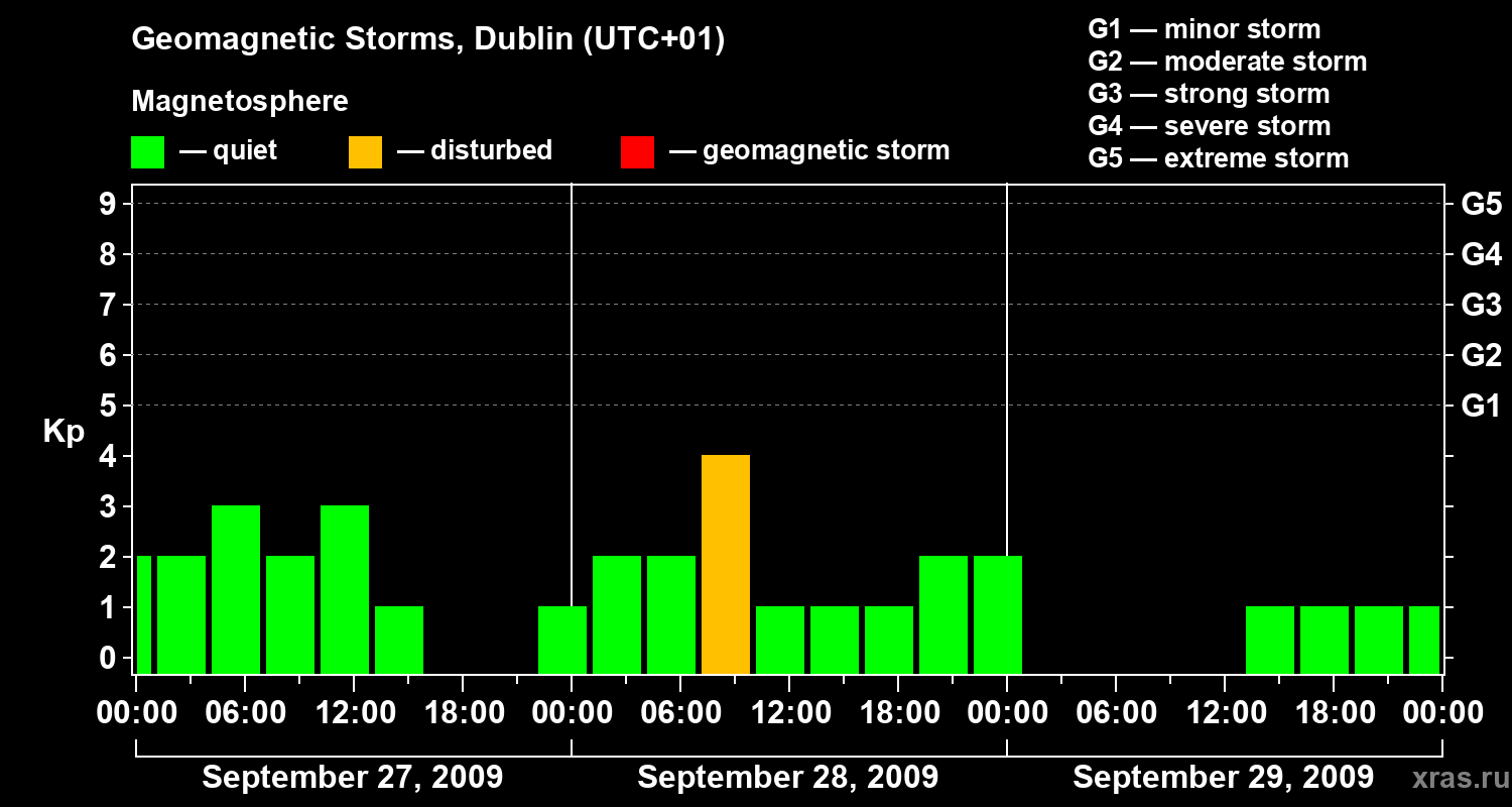 Geomagnetic storms in Dublin on Sep 29, 2009