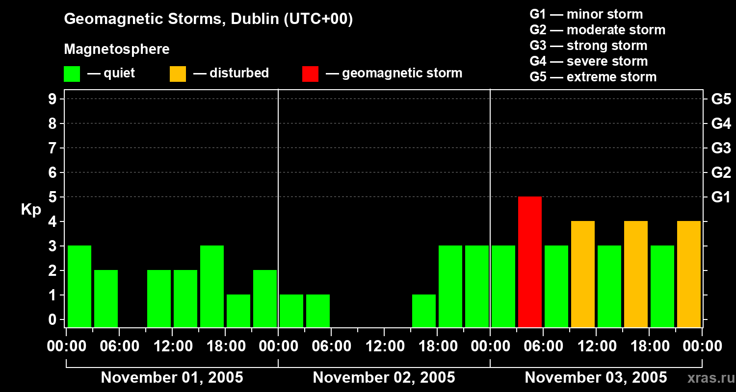 Geomagnetic storms in Dublin on Nov 03, 2005