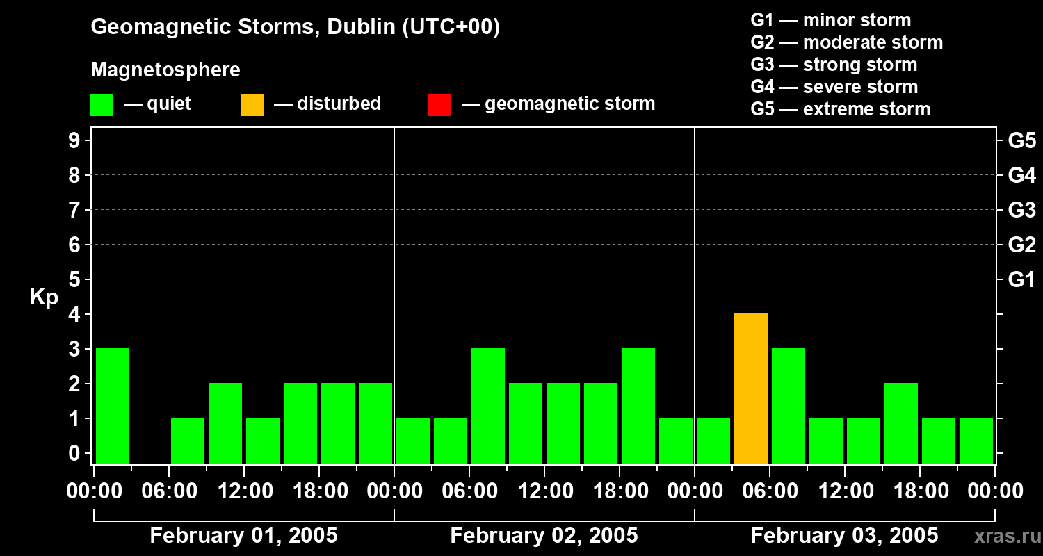 Geomagnetic storms in Dublin on Feb 03, 2005