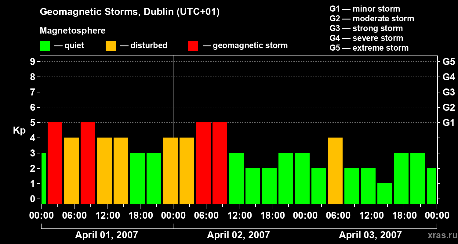 Geomagnetic storms in Dublin on Apr 03, 2007