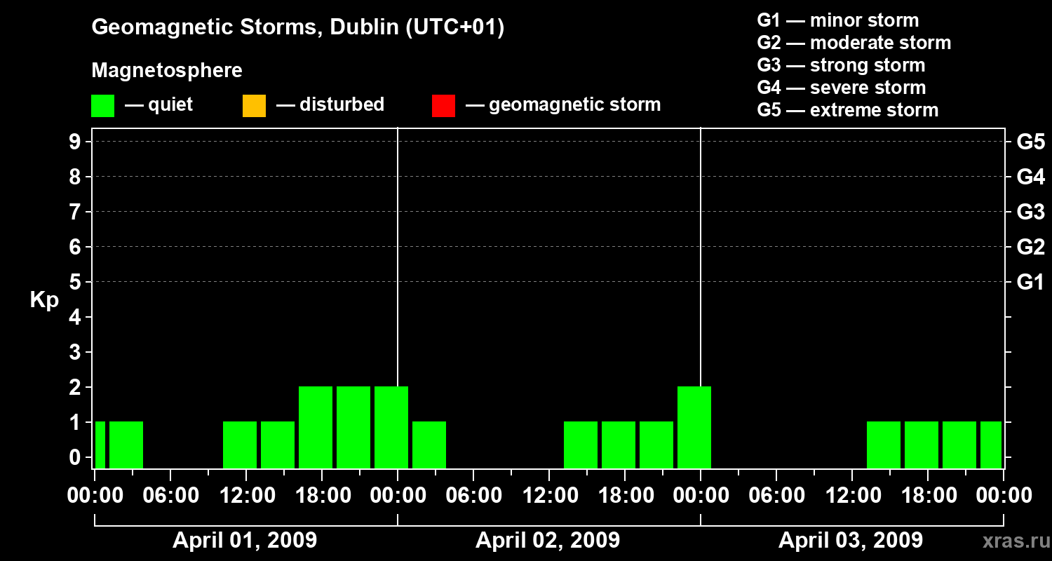 Geomagnetic storms in Dublin on Apr 03, 2009