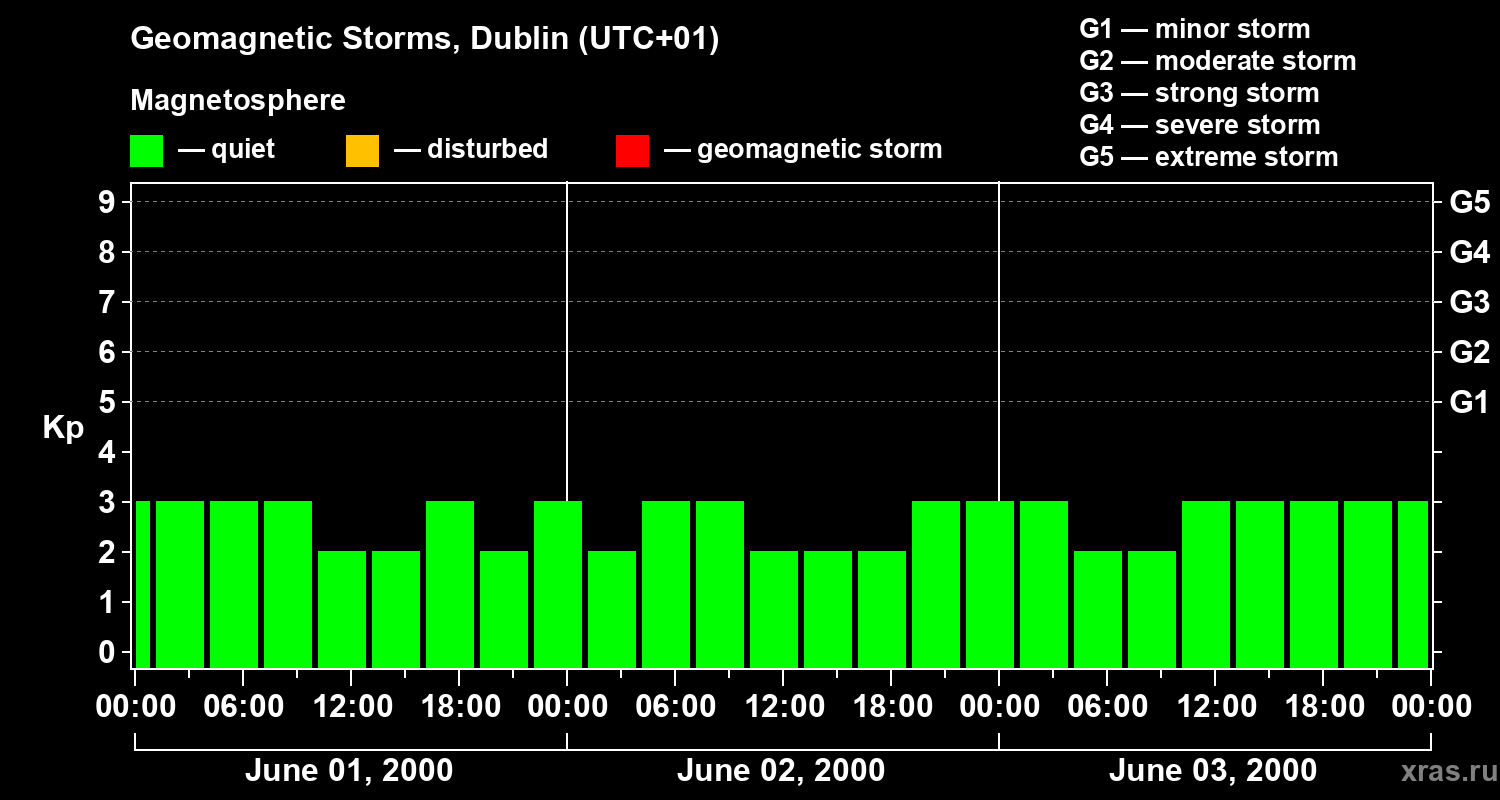 Geomagnetic storms in Dublin on Jun 03, 2000