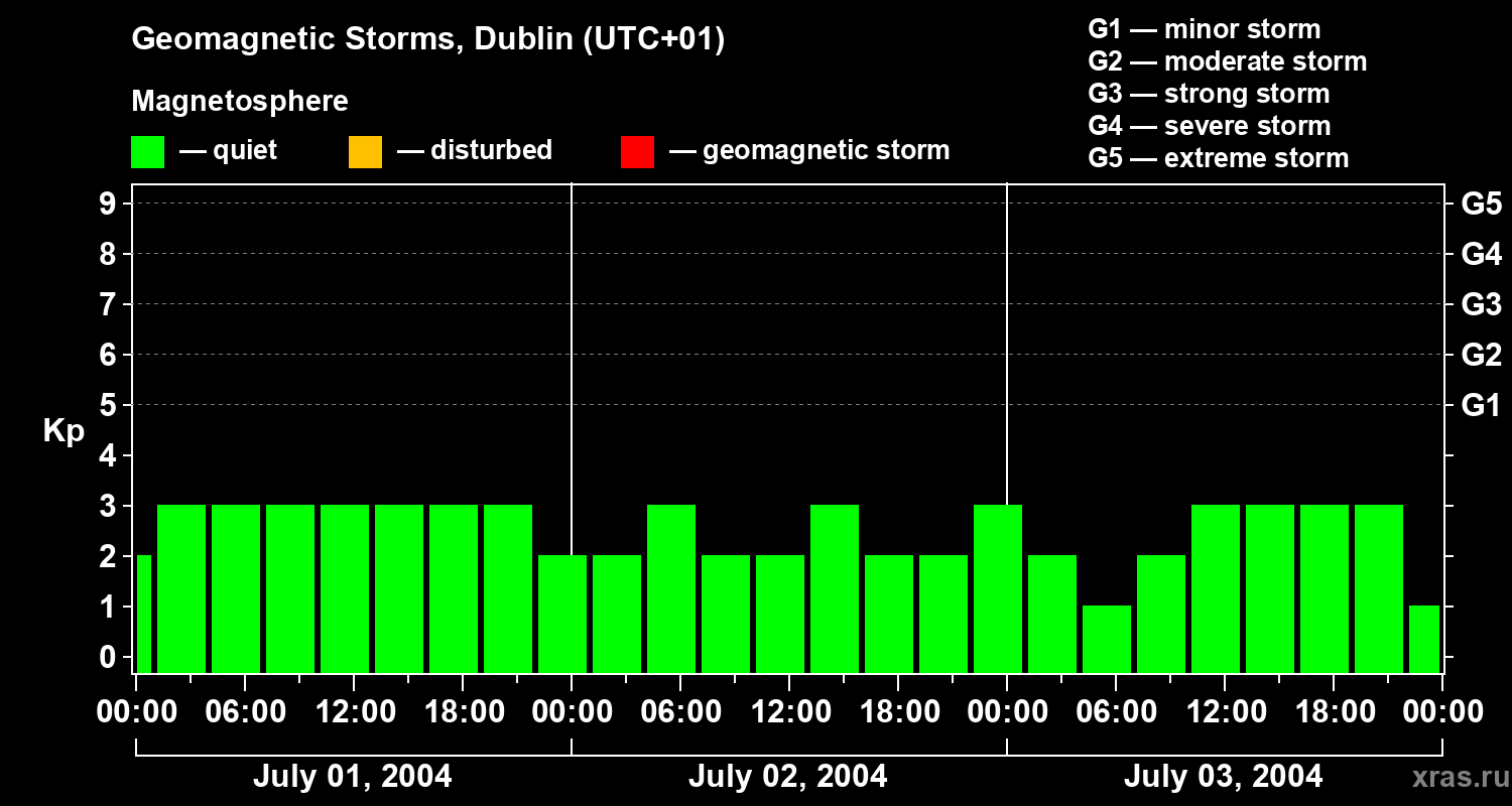 Geomagnetic storms in Dublin on Jul 03, 2004