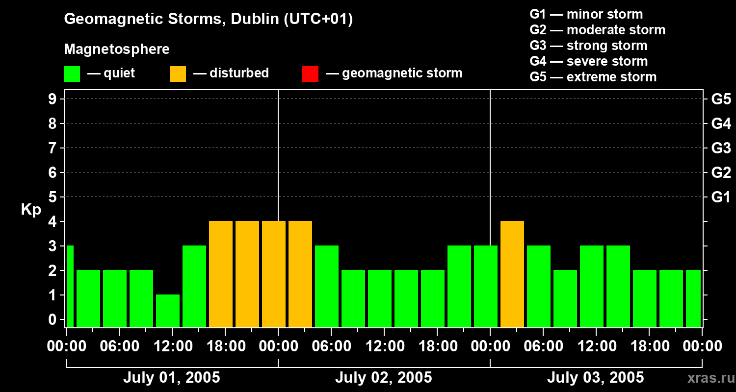 Geomagnetic storms in Dublin on Jul 03, 2005
