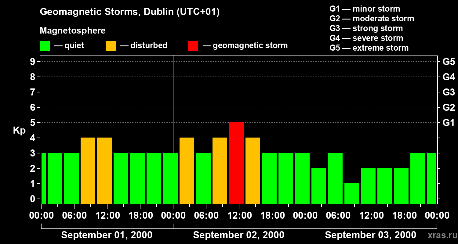 Geomagnetic storms in Dublin on Sep 03, 2000