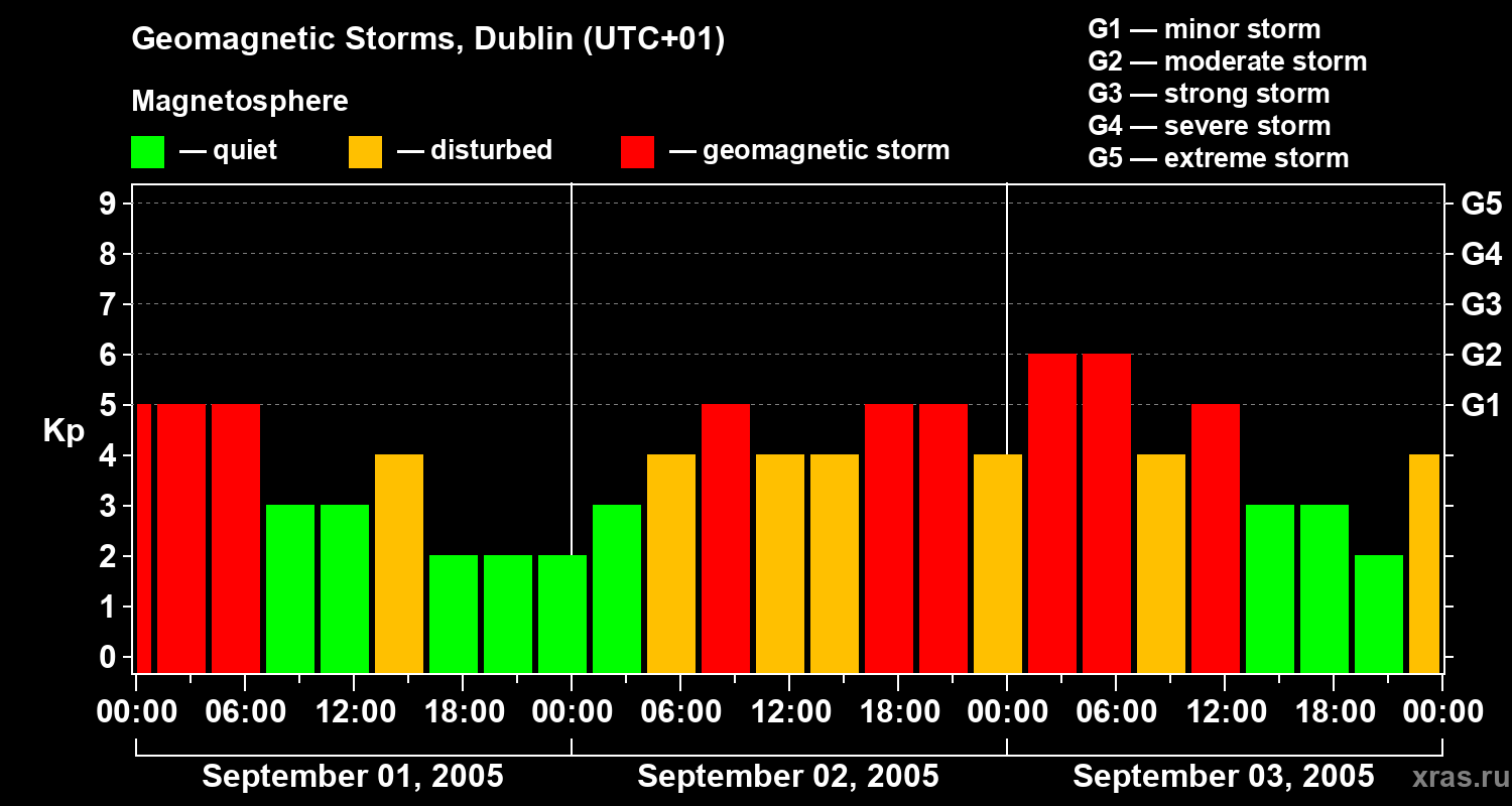 Geomagnetic storms in Dublin on Sep 03, 2005
