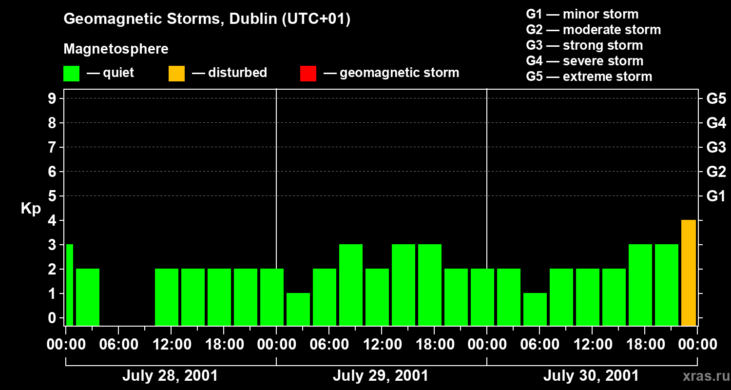 Geomagnetic storms in Dublin on Jul 30, 2001