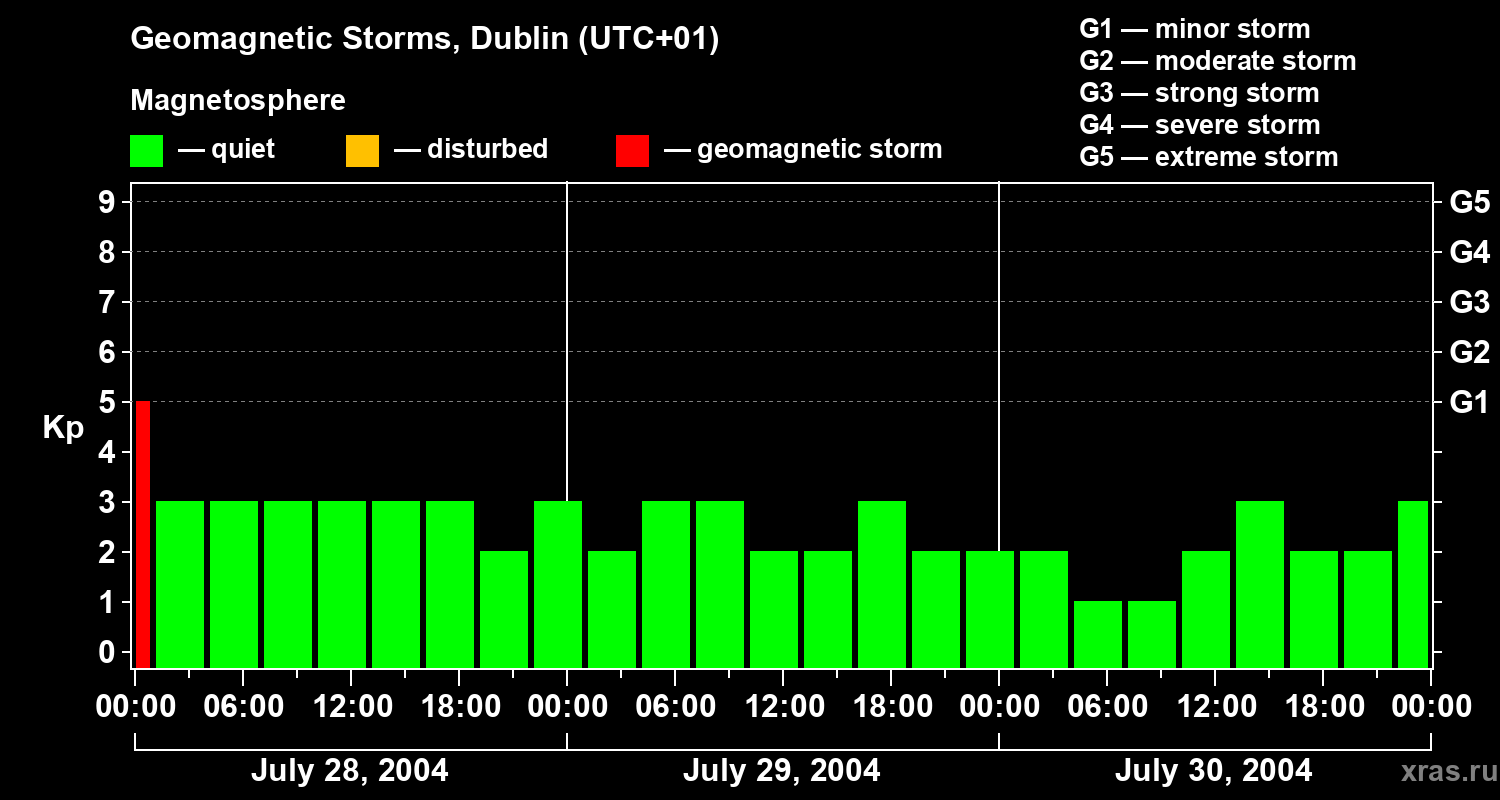 Geomagnetic storms in Dublin on Jul 30, 2004