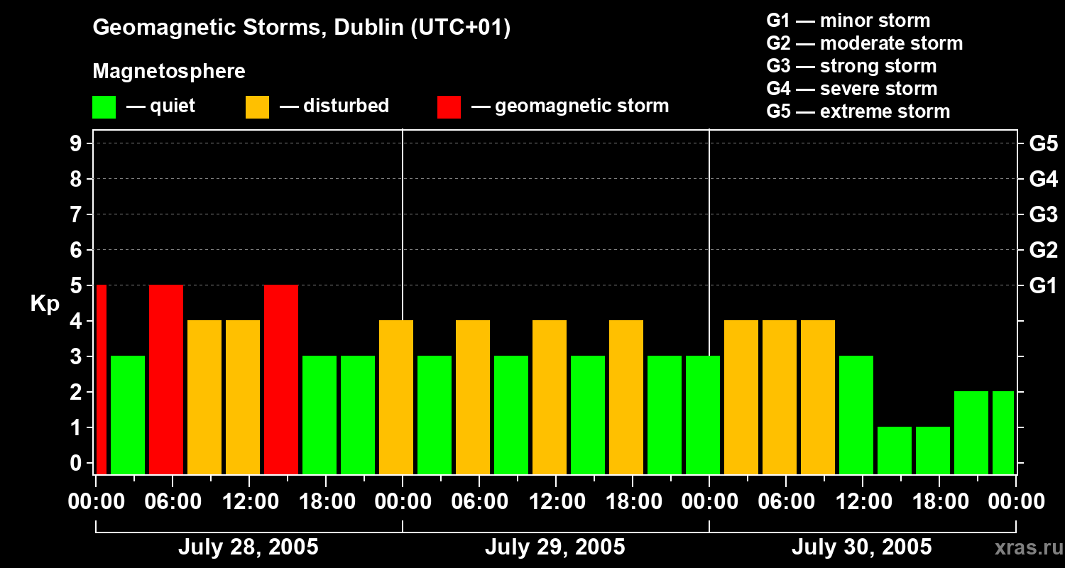 Geomagnetic storms in Dublin on Jul 30, 2005
