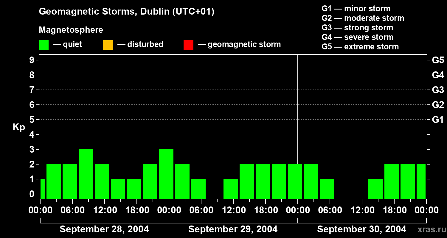Geomagnetic storms in Dublin on Sep 30, 2004
