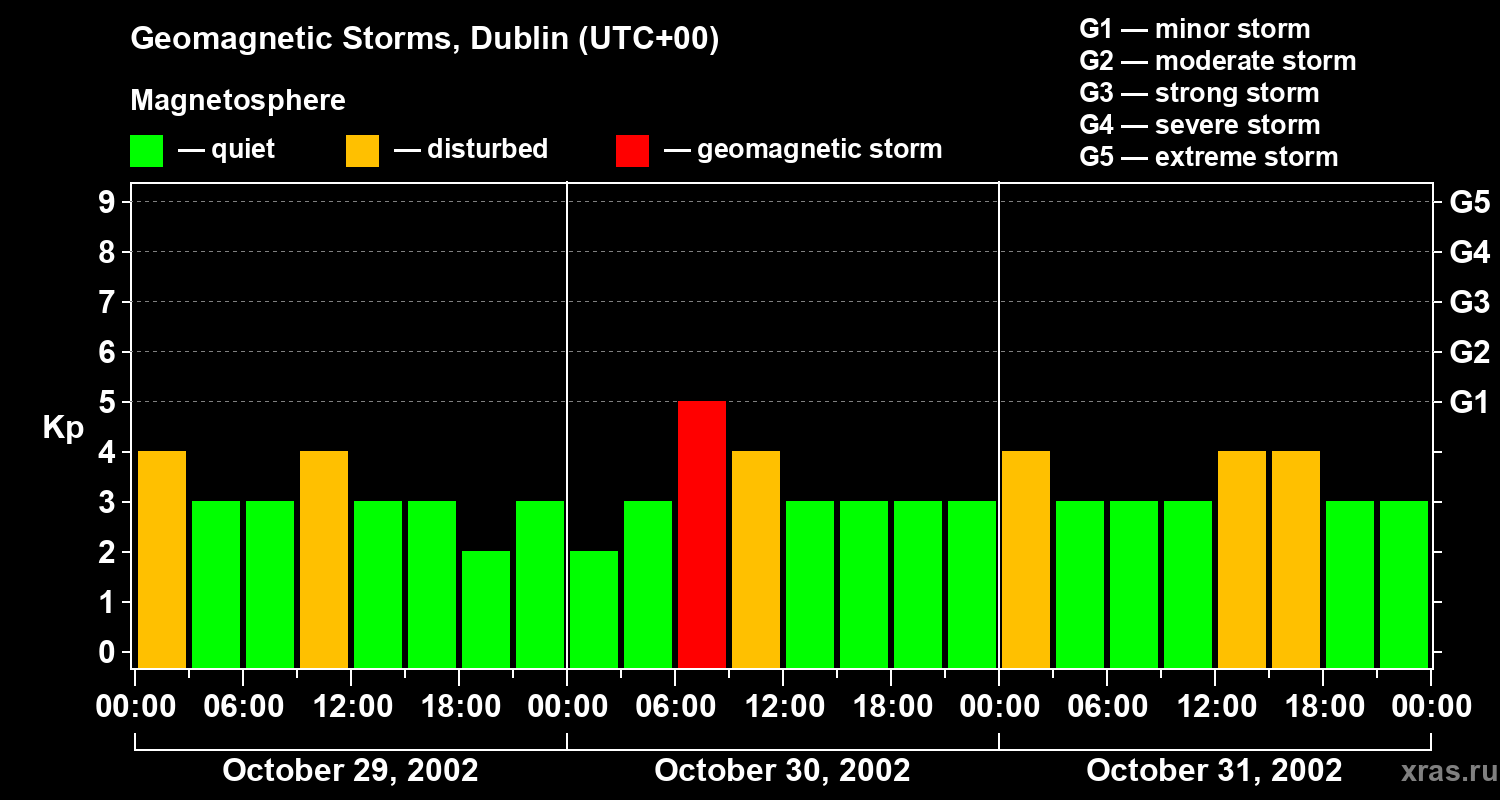 Geomagnetic storms in Dublin on Oct 31, 2002