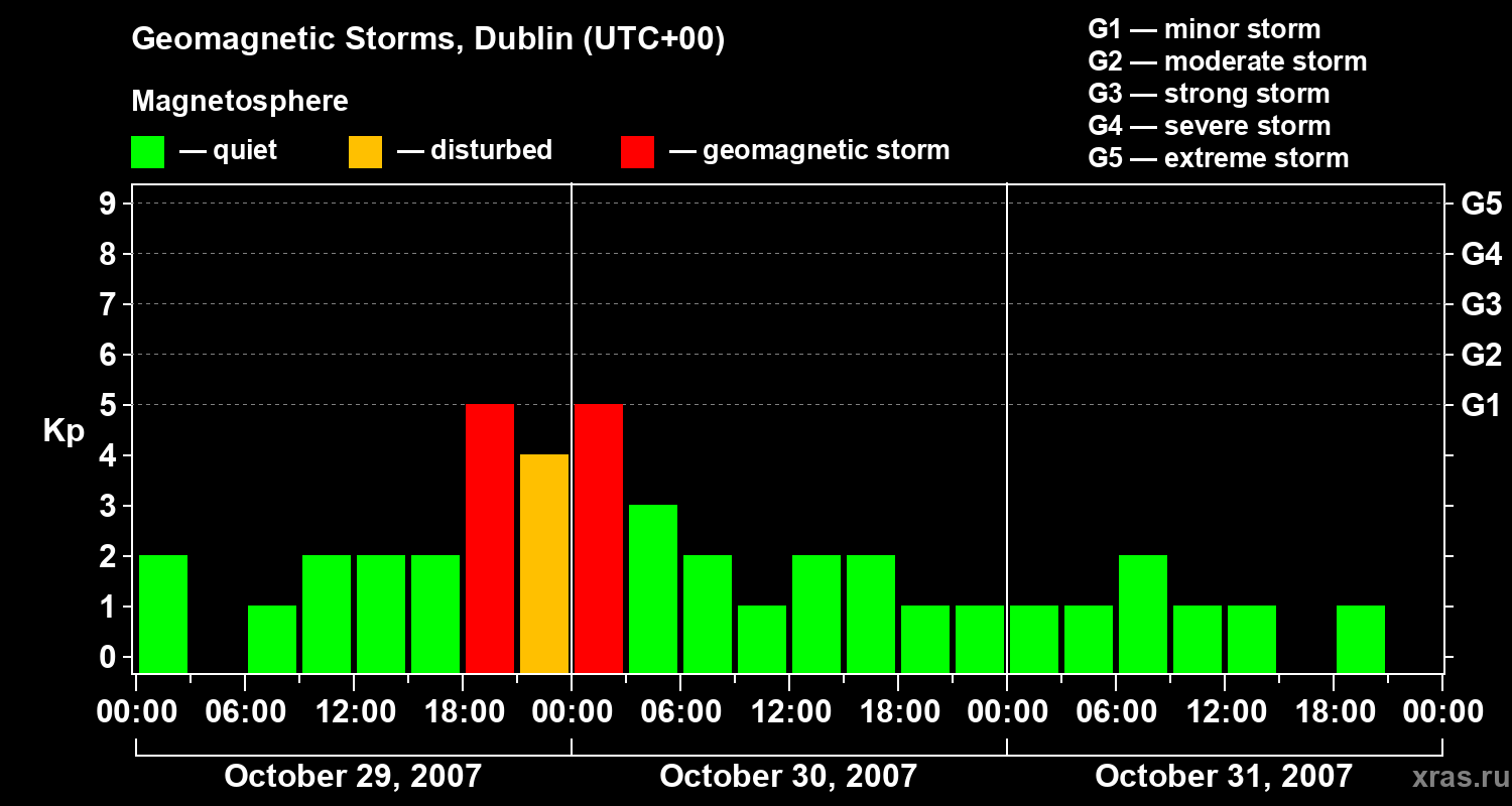 Geomagnetic storms in Dublin on Oct 31, 2007