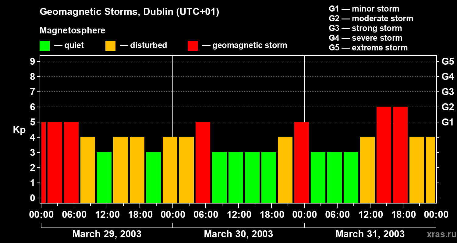 Geomagnetic storms in Dublin on Mar 31, 2003