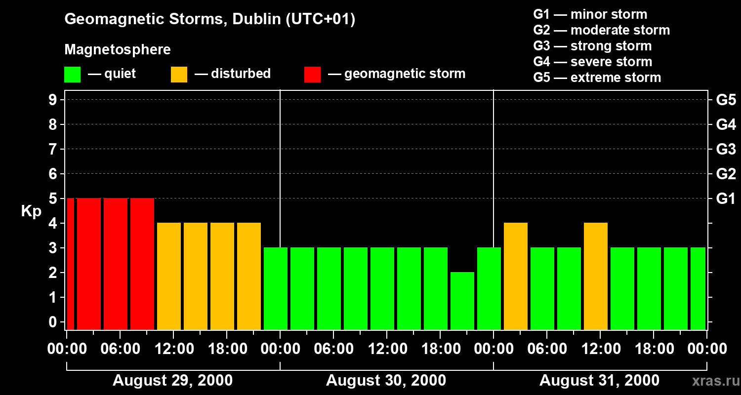Geomagnetic storms in Dublin on Aug 31, 2000