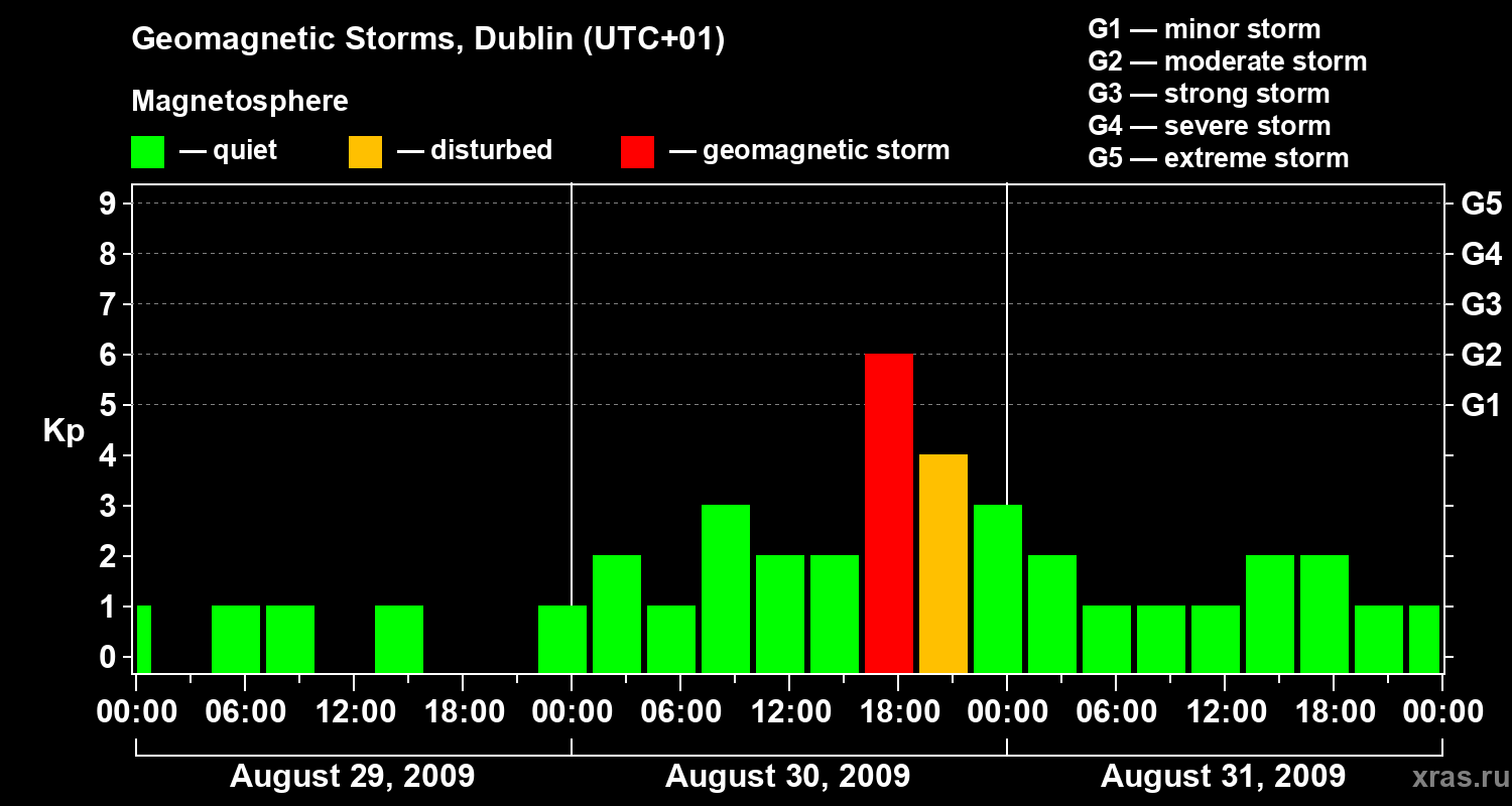 Geomagnetic storms in Dublin on Aug 31, 2009