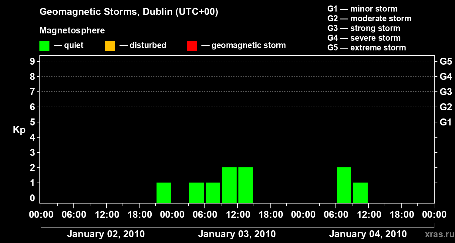 Geomagnetic storms in Dublin on Jan 04, 2010