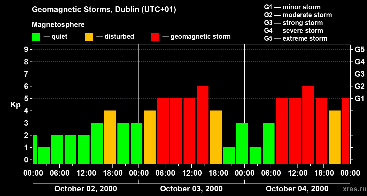 Geomagnetic storms in Dublin on Oct 04, 2000