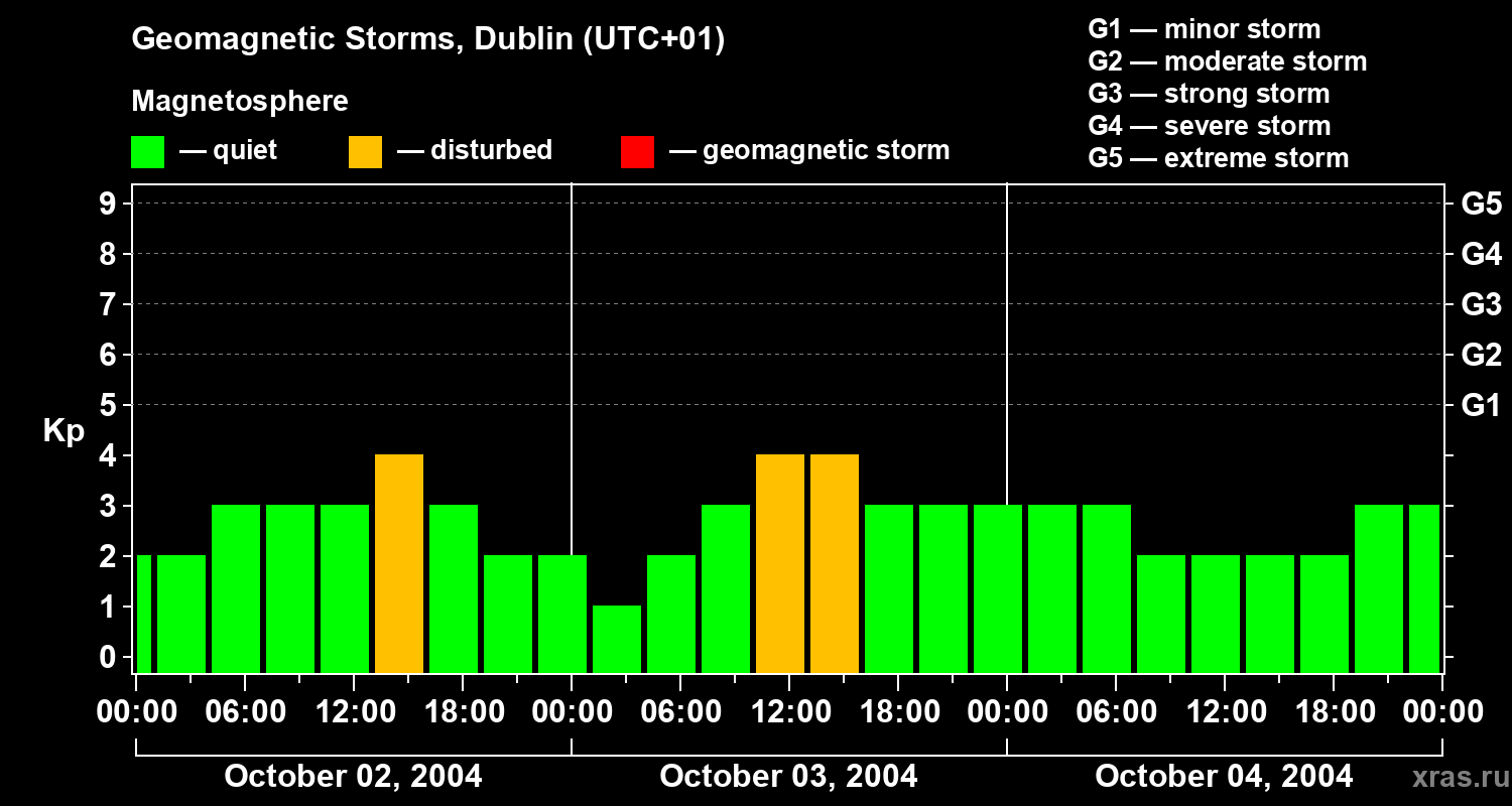 Geomagnetic storms in Dublin on Oct 04, 2004