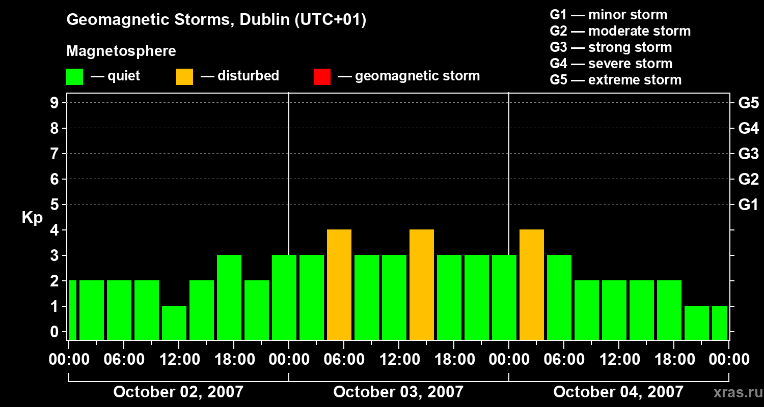 Geomagnetic storms in Dublin on Oct 04, 2007